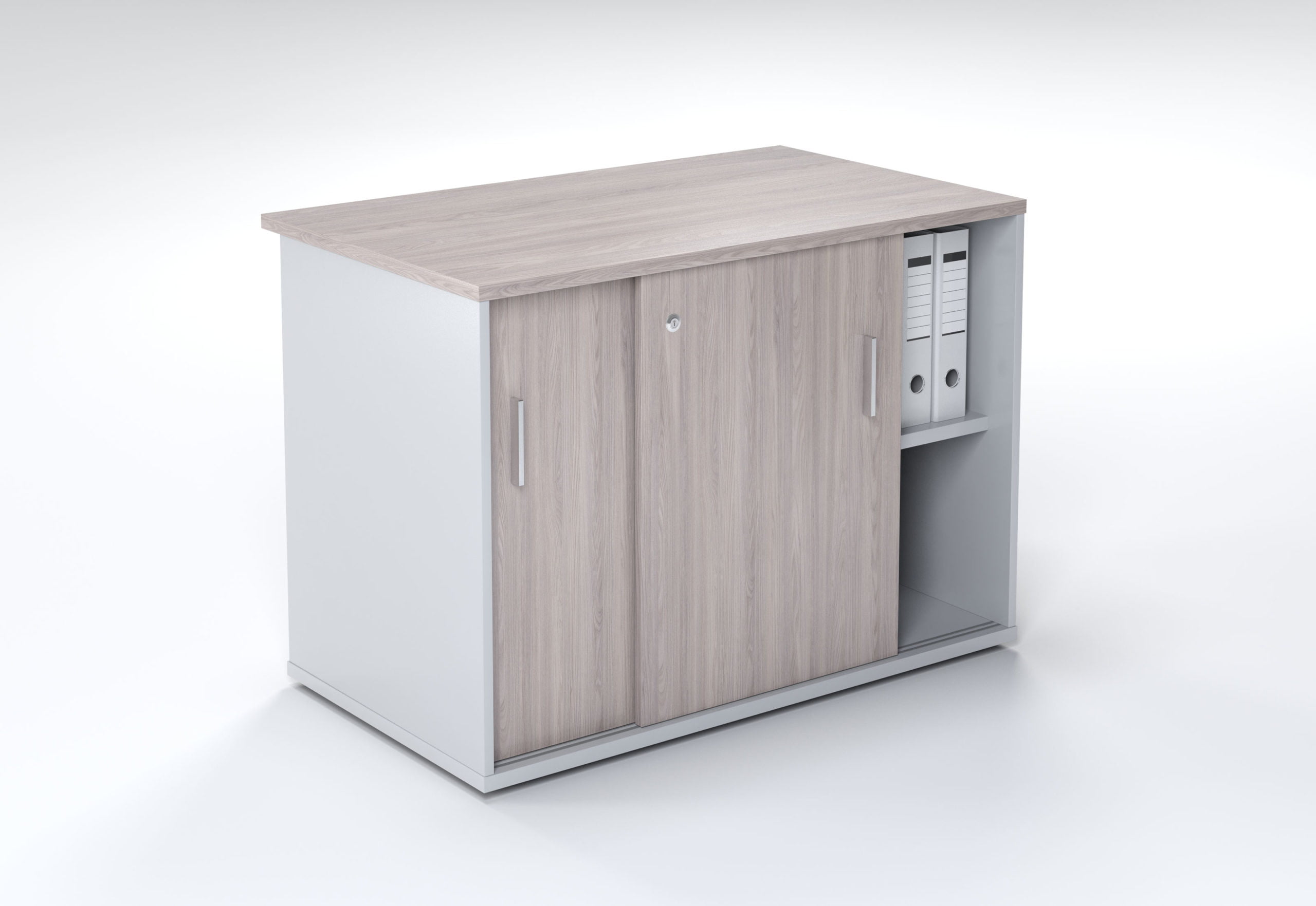 The Sliding Door Credenza offers a compact and efficient storage solution, with dimensions of 1000 x 600 x 722mm. It features a 22mm thick top and base, ensuring durability and stability, along with adjustable ferrules to accommodate uneven floor surfaces. The lockable sliding doors provide secure storage for office essentials, making it an ideal choice for maintaining a clutter-free workspace. Available in various finishes, this credenza can be easily integrated into any office decor.